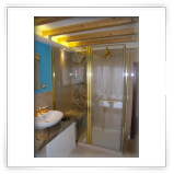 La trasformazione a bagno padronale con accessori di lusso dorati, voluta dal proprietario, è di sicuro effetto.