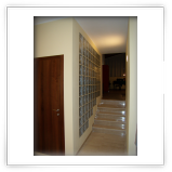 Viste le esigenze famigliari, si è creata una divisoria muraria, nella mezzeria del terrazzo, per dividere la zona soggiorno/camino/pranzo dalla zona studio e gioco ragazzi. In quest'ultima zona è stato inoltre previsto tutto quanto occorre per realizzare, in un futuro, un bagno.